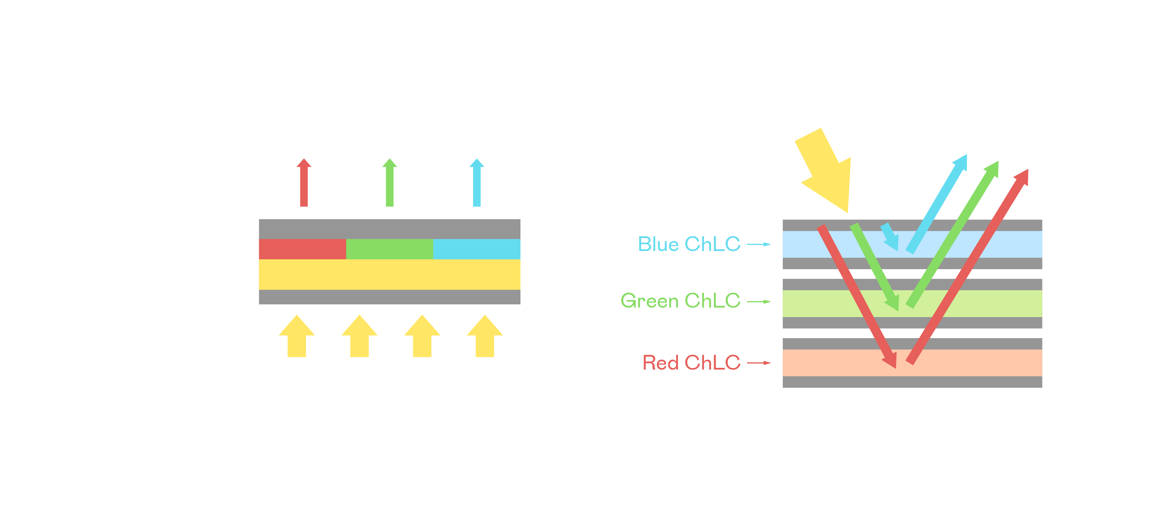 六合联盟官网胆固醇液晶显示器是由红、绿、蓝三层胆固醇液晶面板堆叠而成,并采用无彩色滤光片设计,减少环境光在反射过程中的损耗。